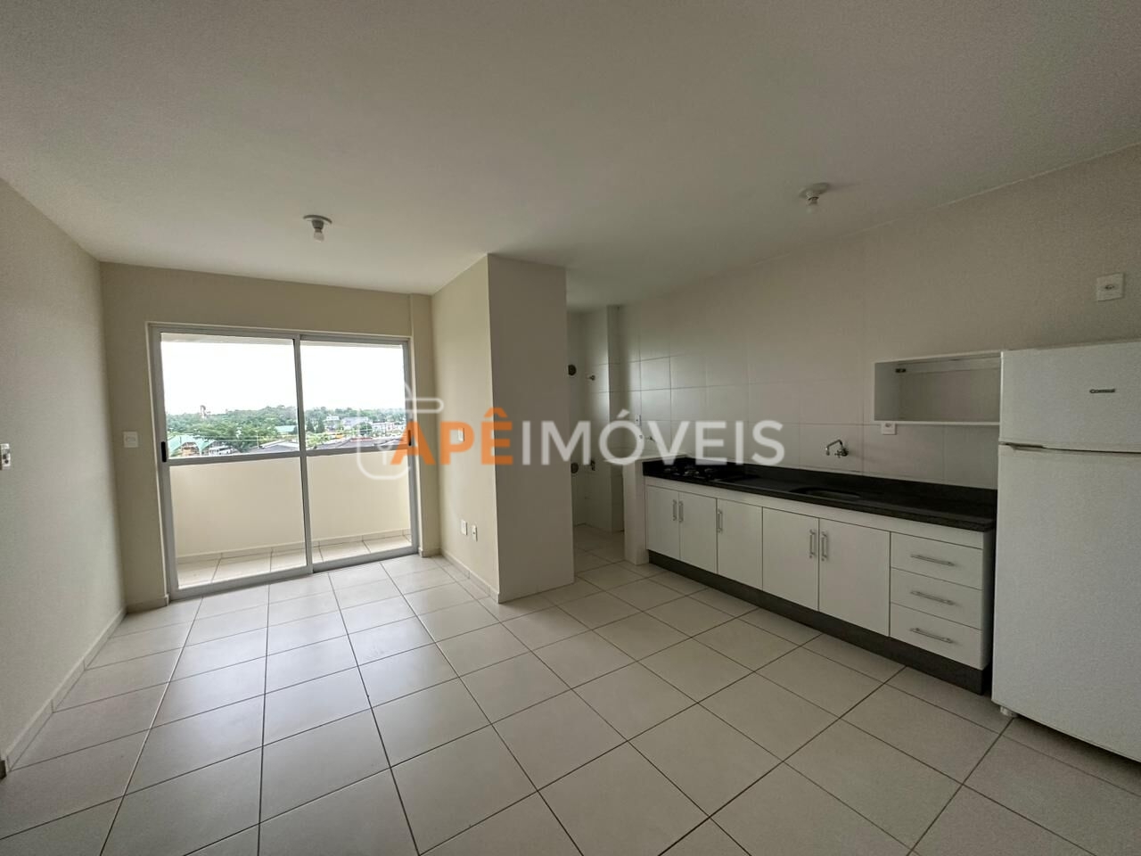Cozinha (fogão, geladeira, pia, armário aéreo com espaço para microondas)